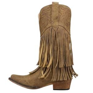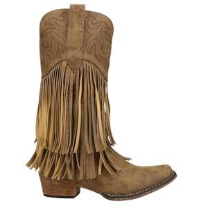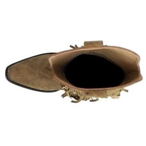 ROPER Womens Brown/Tan Rickrack Snip Toe Mid Calf Fringe Western Cowboy Boots