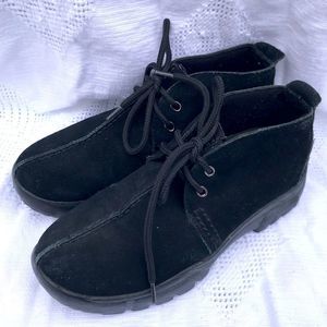 BLACK SUEDE ROPER BOOTS. Low top. Lace up ties. Rubber sole. Size 7. Boots are in excellent condition with slight wear.