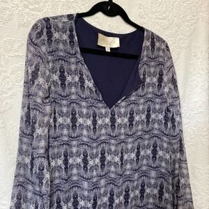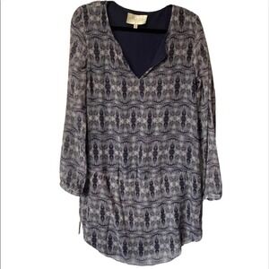 RORY Beca x Revolve M 100% Silk Blue Printed Shift Dress with Drawstring Waist