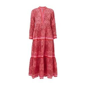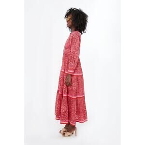 In a new colorway exclusive to Tuckernuck, the Diwali Dress reminds us of bright sunny days and warm breezes with its lovely pink floral print. This flattering and comfortable maxi features a button front half placket and long sleeves with buttons at the cuffs for a bit of polish – and our favorite part is the candy-striped contrasting trim at the placket and tiers which brings some whimsy to this look. We love this style with sandals and sunnies for easy days by the beach and dining al fresco on your next getaway!