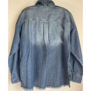 ROSACHA" MEDIUM INDIGO WASHED DENIM POPOVER W/ FRAYED HEM SLIGHT SANDING ON FRONT AND BACK