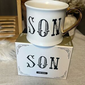 Imports Lithographie Mug - “Son”. Makes a perfect Birthday gift! Enjoy the timeless style of Lithography, a mix of Victorian style and modern aesthetics for a striking result in dramatic gold, black, and white. Lithographie urges us to elevate our lives and own our identities with pride.