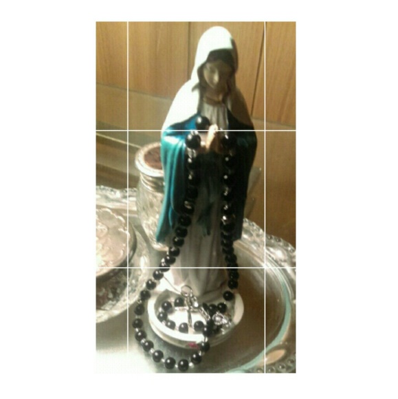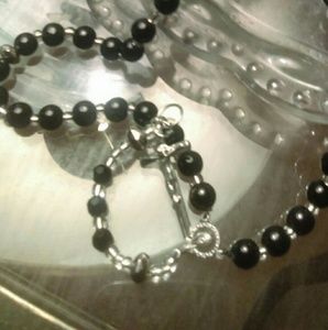 MADE TO SELL. Spiritual, Devotion, Decoration. Nickel free 8mm Black Onyx.Beautiful Rosary. Black with Sterling Silver Center and Cross