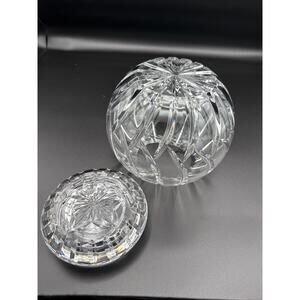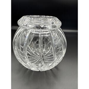 ROSE BOWL Cut CRYSTAL Glass BALL SHAPED Round VASE w SWIRL Cuts - 6”x6” W/ LID
