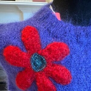 ROSE CARMINE Dress No Sleeves 3D Free Flowers Mohair Wool Handmade One Size NWT