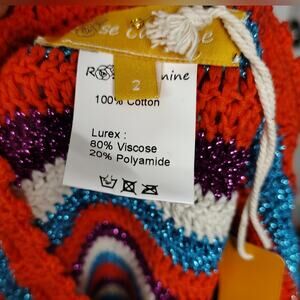 ROSE CARMINE Metallic Crochet-Knit Cotton Stripe Bikini Set Top M/L Bottoms 2