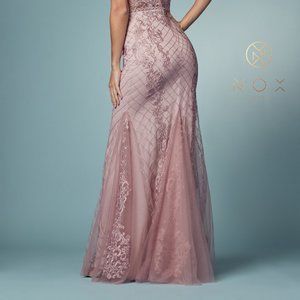 Fulfill your wish to look like a princess with this long mermaid dress. The full-length dress comes with a deep V-neck design and an open back which makes it an excellent attire to wear at a party. The front and back have alluring embroidery and comes in white, rose, navy blue, gold, and burgundy color variants
