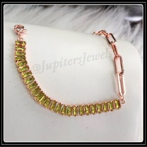 ROSE GOLD PAPERCLIP OLIVE BAGUETTE SIMULATED PERIDOT SQUARE TENNIS BRACELET