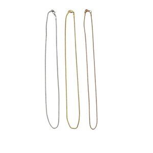 This is a stunning rose gold Stainless Steel rope necklace. It has a high polish finish, shiny smooth surface, and feels very comfortable while wearing. Looks perfect layered with other necklaces as well.