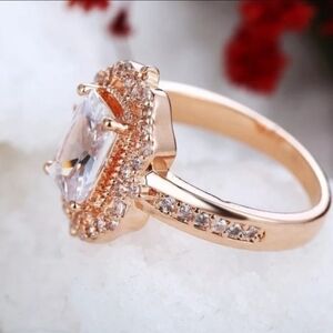 ROSE Gold CZ Stone Diamond Halo Square Ring Vintage