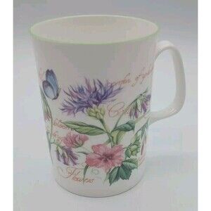 ROSE OF ENGLAND Bone China Floral Coffee Tea Mug Butterfly Hibiscus Fuscia