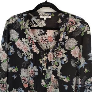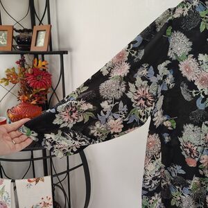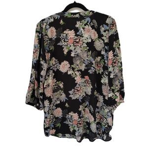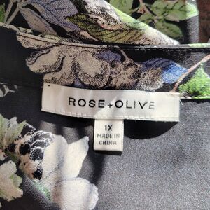 ROSE & OLIVE Black Floral Tunic Blouse 1X Women's Plus Size V-Neck Half Button 3/4 Sleeve Lightweight Career Casual Dressy Feminine. 48" chest, 30" shoulder to front hem. Compare to $50 new!