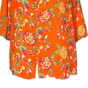 ROSE+OLIVE Blouse 1X Orange Floral Top Plus Size Boho Smocked Neck 3/4 Sleeve Dopamine Colorful Vibrant