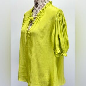 ROSE & OLIVE Bright yellow ruffle keyhole neckline top size XL