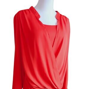 ROSE & OLIVE Draped High Low Orange Top Blouse Medium Event Career Office Travel