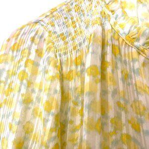 ROSE & OLIVE Long Sleeved Sheer Blouse Butter Yellow Pastel Green Floral Size S