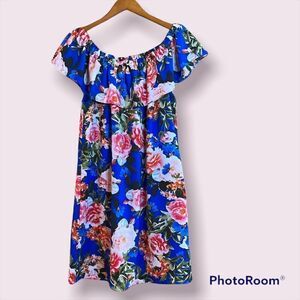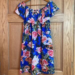 ROSE & OLIVE Ruffle Off The Shoulder Floral Print Dress