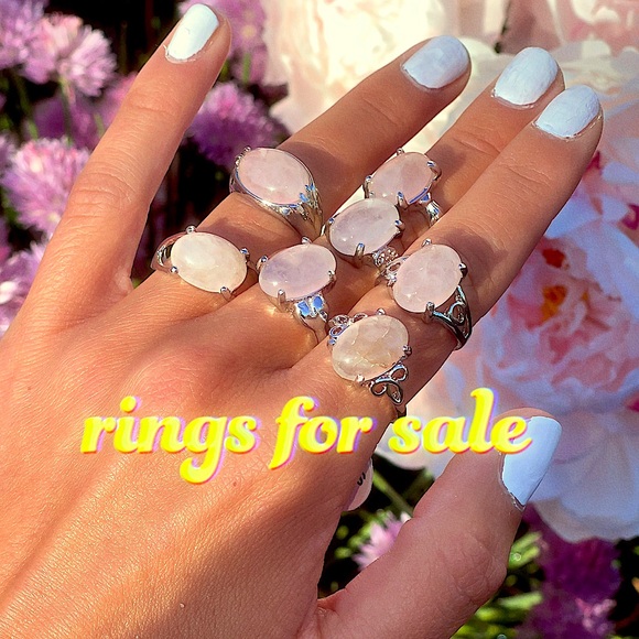 Beautiful rose quarts rings. 7 different designs. Sizes 8-9 and comfortable fitting