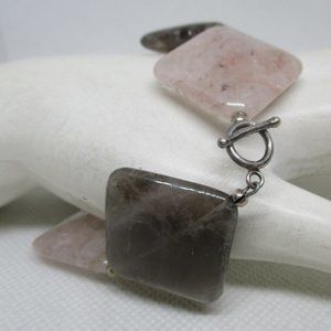 Never Worn genuine gemstone bracelet. Square rose quartz, square moss quartz, sterling silver beads, and sterling silver toggle clasp.