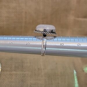 .75" natural stone in a sleek modern cut with vintage style roped trim. Stamped 925 sterling silver.