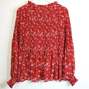 ROSE+OLIVE Red Cream Long Sleeve Floral Elastic Smocked Blouse - Size Small