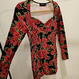 tight black long sleeve with red roses all over 🌹🌹🌹🌹
