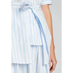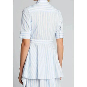 ROSETTA GETTY Apron Wrap Stripe Cotton Shirt Baby Blue White