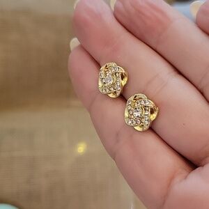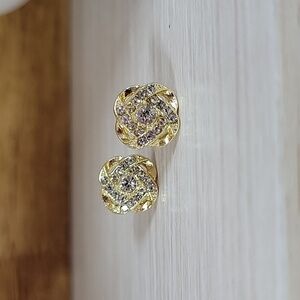 Retro conservative 90s style quiet glam.. 16k goldplate with micro rhinestone shimmer over hypoallergenic alloy with hypoallergenic posts.