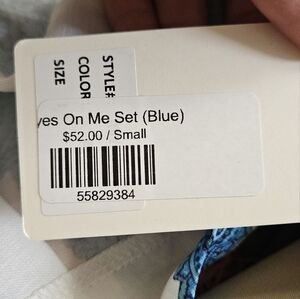 This eye-catching blouse features a vibrant blue and white pattern with a tie-front design. The long sleeves are voluminous and gathered at the wrists, adding a touch of elegance to the cropped style. Perfect for a breezy, relaxed look.