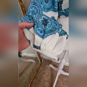 ROSEVELVET Paisley Baroque Print Front Tie-Up CropTop W/bell Sleeves. Small NWT