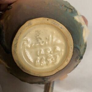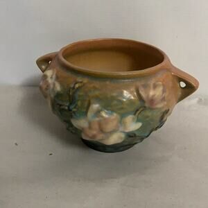 ROSEVILLE POTTERY MULTICOLOR ROUND DOUBLE HANDLE LILIES CLAY VASE