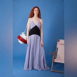 ROSIE ASSOULIN Blue & White Knit-Paneled Striped Cotton Max Dress Size 8 EUC
