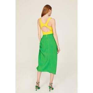 ROSIE ASSOULIN Women's Yellow Green Wrap Sarong Scoop Neck Beach Dress Size 6
