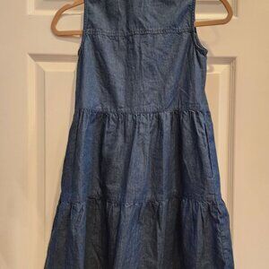 ROSIE HARLOW SLEEVELESS POINT COLLAR TIERED CHAMBRAY DRESS GENTLY WORN $12