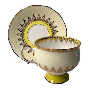 ROSINA Yellow Gold Footed TEA CUP & SAUCER SET England 1940s Fine Bone China VTG
