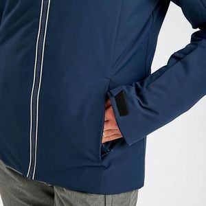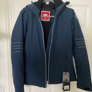 Beautiful brand-new off the rack, with tags jacket. Bought this from the website and is in perfect condition. Made with waterproof but breathable polyester and is insulated for cold weather. Hood is attached. Zip front, hand, and sleeve pockets. Has inner thumbhole cuffs. Imported from France. Perfect for cold weather sports or for looking stylish on the street.