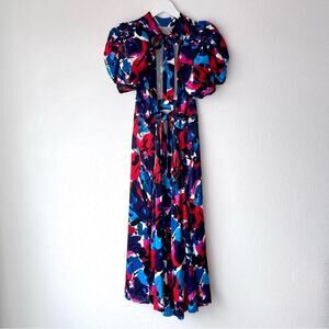 ROTATE BIRGER CHRISTENSEN Dawn Open-Back Printed Satin Midi Dress Size 2 XS