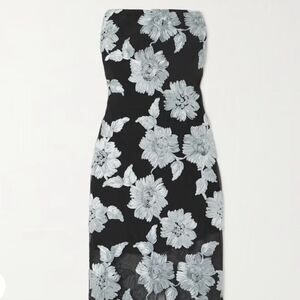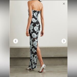 ROTATE Birger Christensen's maxi dress is perfect for parties. It's made from recycled-mesh underpinned by a mini slip and appliquéd with satin ribbons in the shape of flowers. Make the most of the strapless neckline with a dusting of highlighter on your collarbones.