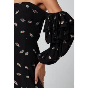 Rotate Bethany Off-Shoulder Black Floral Ruffle Trim Mini Dress size 2
