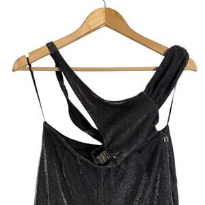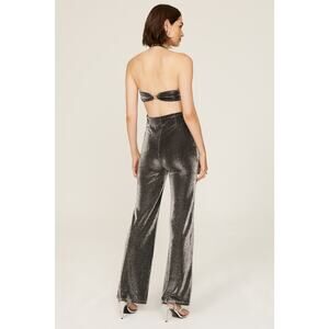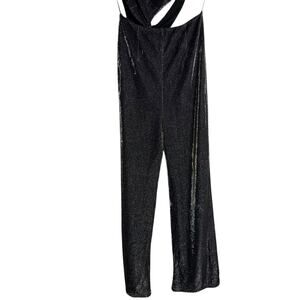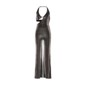 ROTATE Birger Christensen Isha Metallic Black Cut Out Halter V-Neck Jumpsuit 8