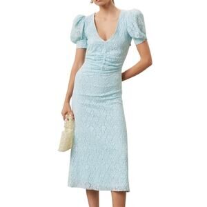ROTATE Birger Christensen Lace Puff Sleeve Dress in Blue, Size US 2