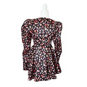 ROTATE Birger Christensen Pauline Floral Mini Dress 4 Black Pink Floral