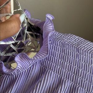 Rotate Birger Christensen Elegant lilac dress with ruffled details and button front. Perfect for any occasion. Has a beautiful metallic and lilac purple design. Little ruffles around.