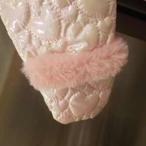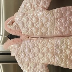 💕ROTHSCHILD Faux Fur Trimmed Quilted Heart Pram Blush Iridescent 3/6 Months NWT