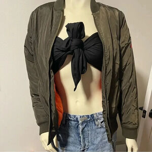 ROTHSCHILD OLIVE GREEN BOMBER JACKET FLORAL ACCENTS SIZE XL 16/ WOMENS S