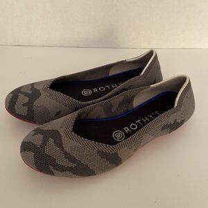 ROTHY'S Birdseye Ballet Flat Loafer Round Toe Camo Gray Slip On Textile …