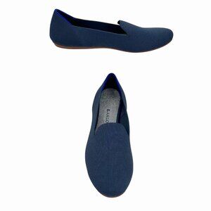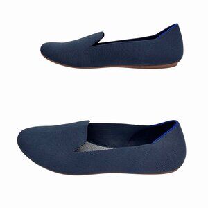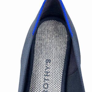 Awesome Rothy's navy blue flats. Eco-friendly flats designed for comfort and style, featuring a rounded toe end and slip-on fit. Made from recycled materials with durable construction. Size 10.5. Machine washable. Royal blue accent at top of heels.