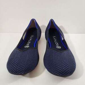ROTHYS The Flat Women 9 Black Blue Metallic Chevron Ballet Flats Shoes Round