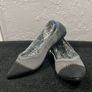 🔥🔥 ROTHY’S The Point Gray Mist Cap Toe Ballet Flat Shoes Womens Size 10.5 - E