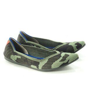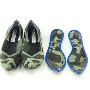 ROTHY'S The Point Green Camo Flats Comfort Shoes Washable Removable Insole Vegan Lined